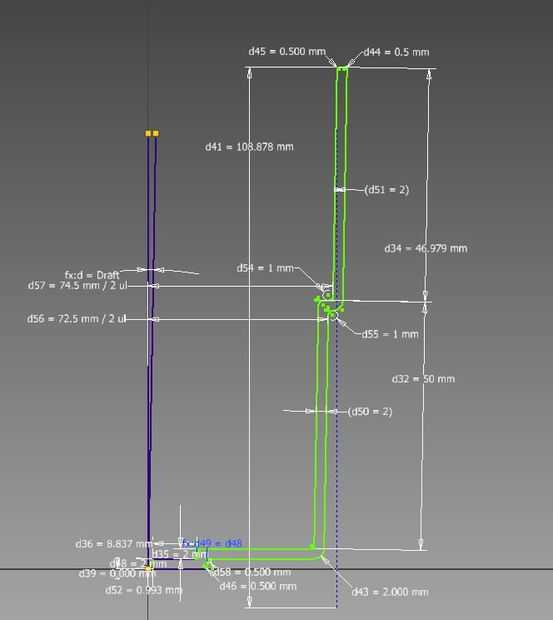 * Hacer un ángulo de inclinación de la referencia. Usted puede sintonizar esto de 0 grados (cuando 3D impresión) para grados 1-2 al crear inyección moldeo die.