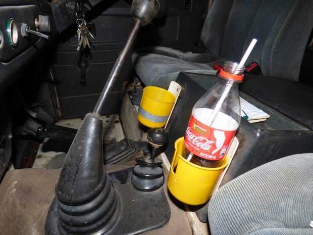 Sé que no parece la más bonita, pero funciona - y eso es lo que hace nuestro Land Rover, funciona. El sostenedor de taza fielmente sostiene botellas de agua, latas de coca-cola y lo más importante, mi taza de café de los papás. Es lo suficientemente profunda como para que usted no tiene que preocuparse de su bebida caiga en los baches senderos de la selva.
