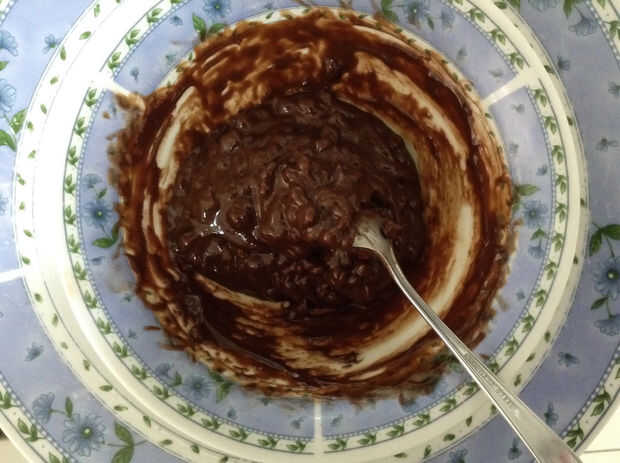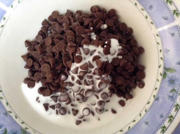 1. derretir el chocolate y la crema en un baño de agua. Un chunkiness leve es aceptable.