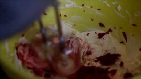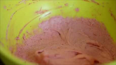 Mientras tanto, preparemos el relleno. En un tazón, tome mantequilla sin sal, asegúrese de que esté a temperatura ambiente. Batir hasta que esponje. Agregue el azúcar y bata hasta cremoso y mezclados todos juntos. Ahora es el momento para agregar el puré de fresa. Batir por otro minuto o tan. He añadido 2 gotas de rosa alimento colorante que es totalmente opcional. Se puede utilizar para obtener el color deseado si el puré no es lo suficientemente brillante.