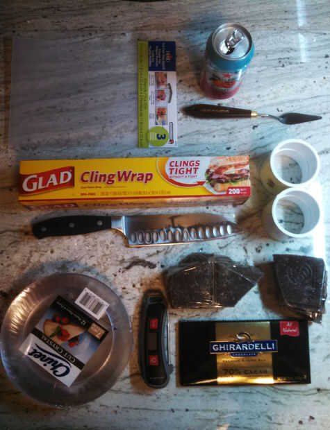 10.) algo para cortar chocolate con - usé mi cuchillo (se ve raro porque yo he adelgazado hacia fuera un poco para que se corte mejor)