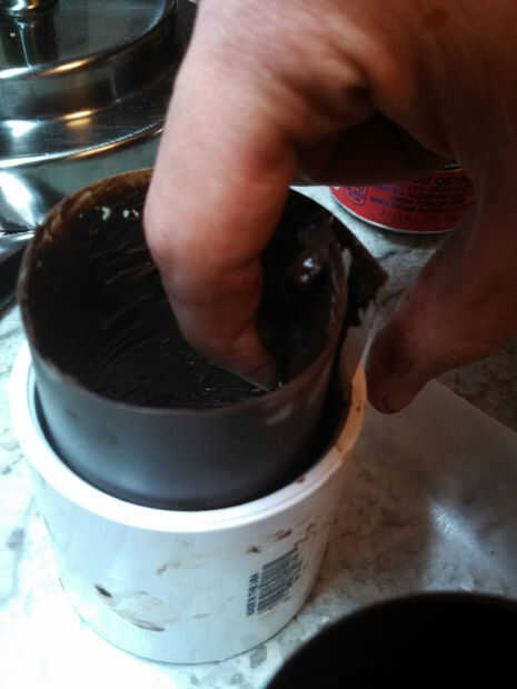 Ponga sus dedos en el chocolate y empezar a cubrir la costura con una saludable cantidad de chocolate.