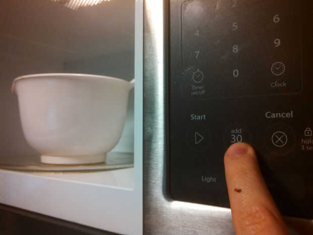 No me juzgues, pero utilizar un microondas para mi chocolate. Para personas que no tienen una caldera doble o hacer cosas un poco más rápido, esto funciona muy bien!