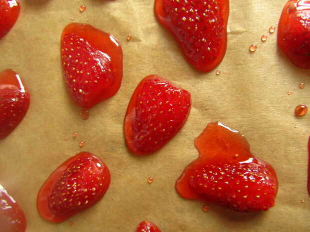 ~ La receta jarabe de fresa Rinde bastante más que lo necesario para decorar los chocolates, pero me parece que parte de la alegría de cocinar es la interminable fuente de sobras para arrojar otros brebajes.
