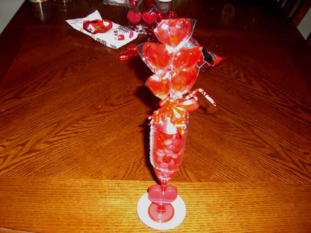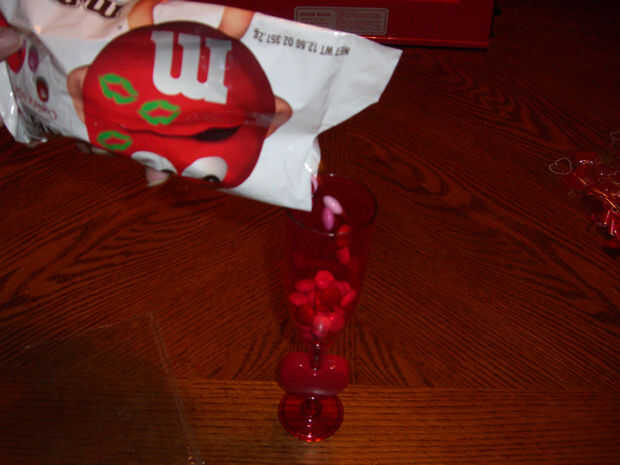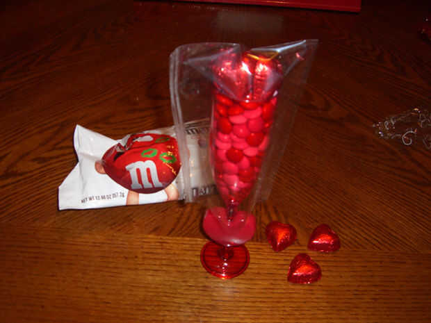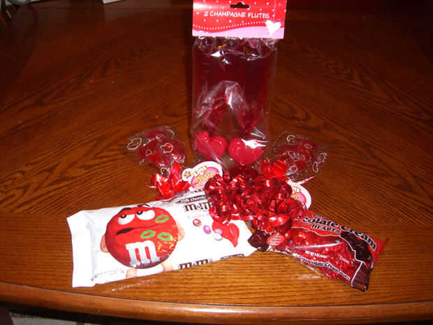 En Wal-Mart el Chocolate corazones fueron $1 un bolso, las ventosas fueron 1.00 5 y vino con una etiqueta de regalo y arco ya en ellos y los M & Ms fueron $2,50 para el big-bag.