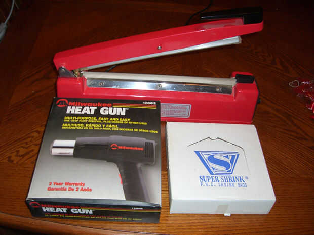 Las cintas y encogimiento abrigo bolsas y equipo eran cosas que ya tenía alrededor de la casa.