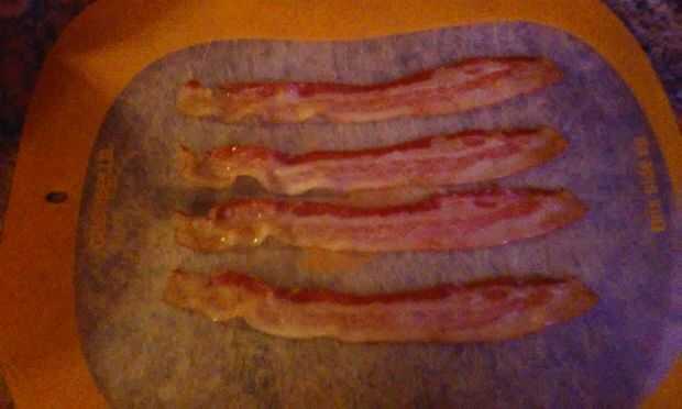 Tomar cuatro de sus lonchas de bacon y cortar en tercios.