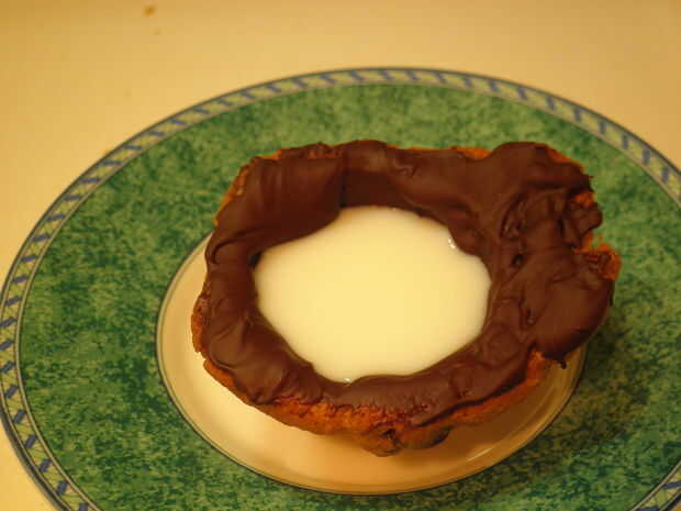 sí, puede hacer un recipiente enteramente de galleta! Y es más fácil que usted puede pensar...Llene la taza de galletas con jengibre o cualquier variedad de galletas que te gusta, comer las galletas, luego comer el plato!He usado bastones de caramelo