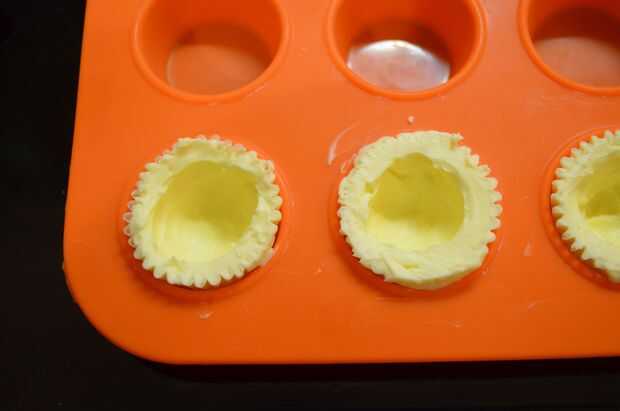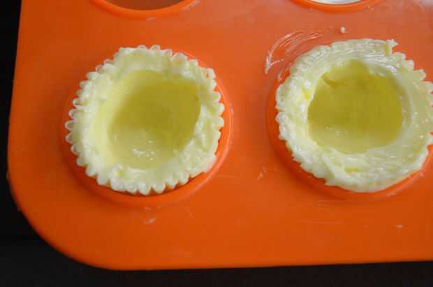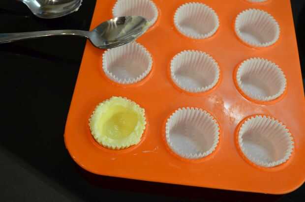 1. Siguiente paso fue tomar temperatura ambiente mantequilla y vierta en los trazadores de líneas. con el dedo la mantequilla en la parte superior de la Copa y asegúrese de que no hay cobertura total en todos los lados y la parte inferior.