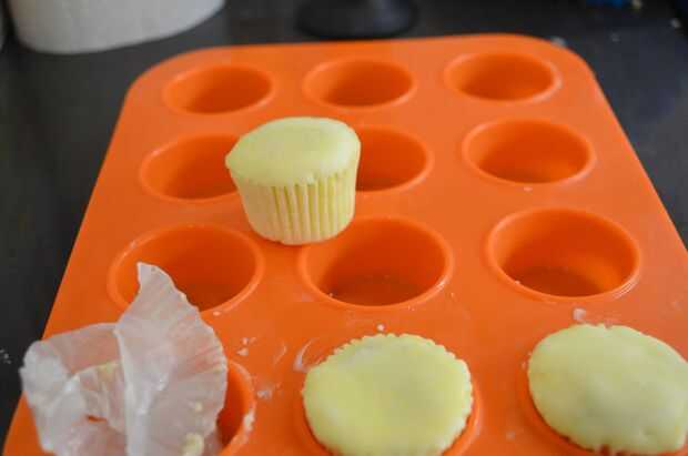 6. Cuidadosamente retire los forros de papel, asegurándose de no mantenerlos mucho tiempo como las crestas se derretirán rápidamente. En el congelador un rato volver a endurecer.