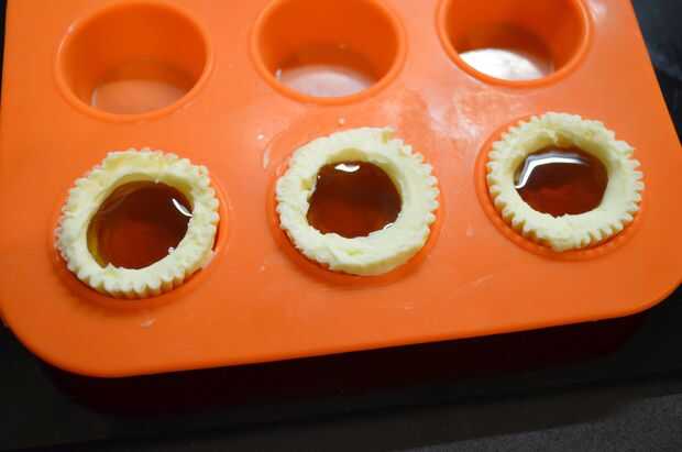 3. Sacar la bandeja y llenar cada taza con real jarabe de arce canadiense (sería una farsa para no utilizar el mejor jarabe) Asegúrese de dejar un poco de espacio para la "tapa".