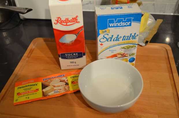 Mezclar la levadura seca, agua, azúcar y sal junto en un recipiente y deja reposar durante unos 15 minutos dejar que la mezcla a desarrollar.
