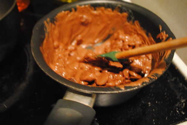 -Si el chocolate se empieza a endurecer, levantar un poco el calor mientras revuelve y ver para asegurarse de que no se queme.