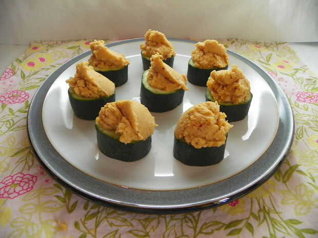 Sake en tazas de pepino de Monte Fuji comestibles