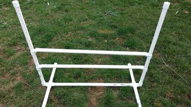Hola a todos!Mi pequeño Cockapoo, rubí, le encanta hacer agilidad y quiero poder practicar con ella en casa!  Una de las primeras piezas de equipo que es útil para un curso es la barra de salto.  Se utiliza en todos los diversos "juegos" y los p