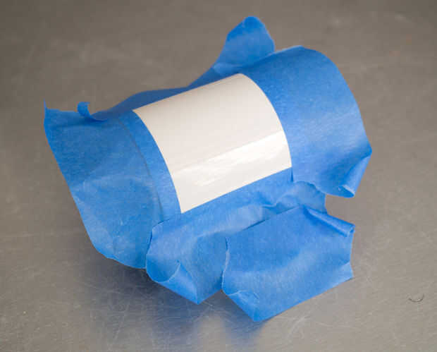 Tome la cinta y aplicar donde no quieras ir de la pintura. Así que aquí voy para un rectángulo básico justo a la derecha de la manija.
