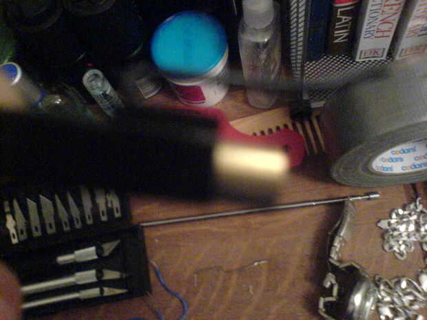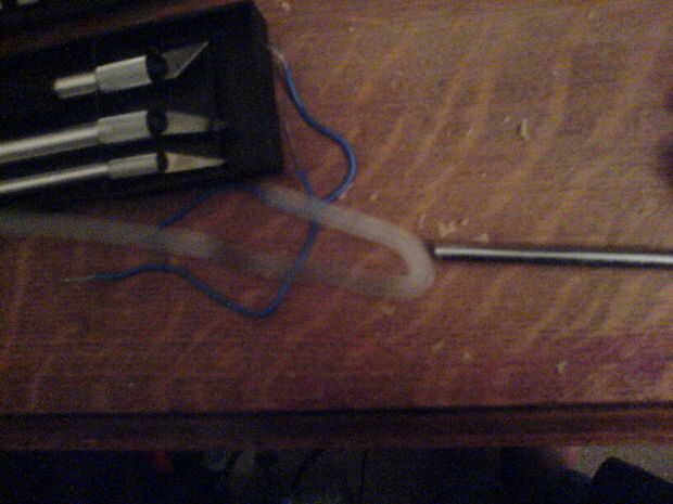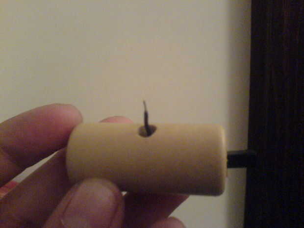 para ello utilicé la arial para perforar otro agujero este tiempo solamente goin a través hasta el agujero anteriores, luego ensanchado con el cuchillo de la manía.