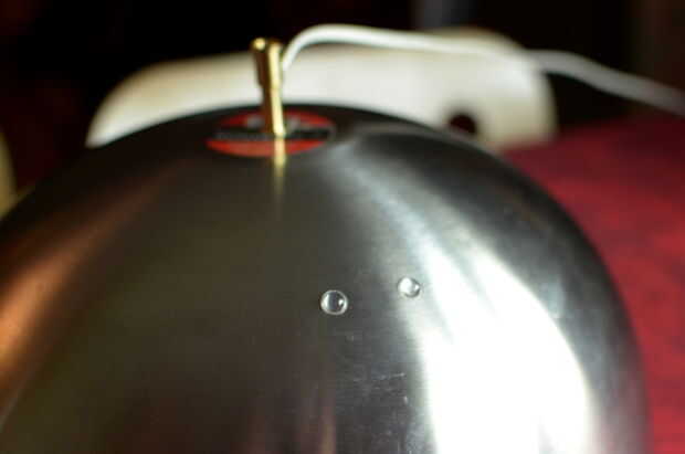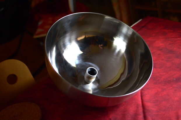 Una lámpara simple con un bowl de inox grande con un interior reflexivo.