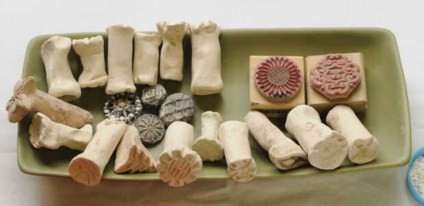 (véase Stampin en estilo) para presionar en arcilla