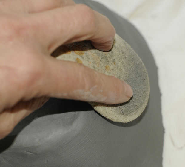 Tomar una esponja y alisar ligeramente la parte inferior y los lados del tazón de fuente.