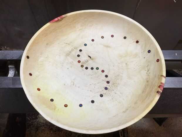 Usando lápices de colores es una manera divertida y fácil llevar interés a un otra manera aburrido pedazo de madera. Utilizando estructura patrones o enfoque de cielo de noche al azar el nivel de creatividad es ilimitada. Creo que sería divertido añadir un monograma en el fondo del recipiente usando lápices de colores, regalo de un gran maestro quizás!