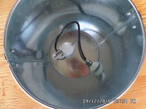 Idealmente se invierta una lata y meter algunos agujeros (para que el aire hacia fuera una vez sumergido) y una arandela de goma y un tornillo para conectar la lata y los alimentos del tazón de fuente para que el bolo alimenticio se suspende en el ce