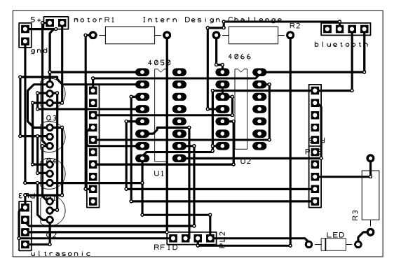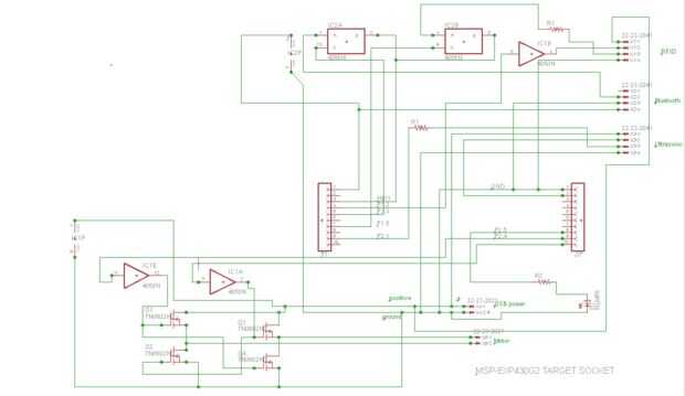 El circuito permite el MSP430 para comunicarse con los módulos y permite que el microcontrolador abrir y cerrar la tapa.
