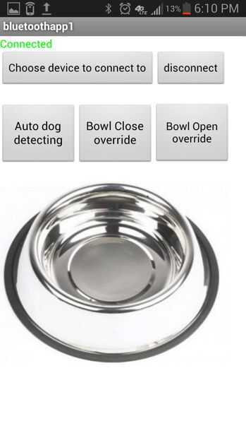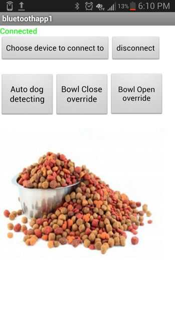 Simplemente descarga la aplicación e instalarlo en el teléfono Android. Abra la aplicación y elegir el dispositivo de bluetooth con la etiqueta "linvor". La aplicación dice conectado y ahora puede ser usado para controlar el tazón de fuente del perro.