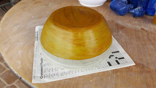 Con el molde de hormigón ligeramente húmedo, aplique un tinte ácido concreto. He utilizado DCI Deco Gel gelificado ácido mancha en café Brown. Puesto que ha gelificado, la mancha no gotee y puedo conseguir líneas muy agradables en la superficie.