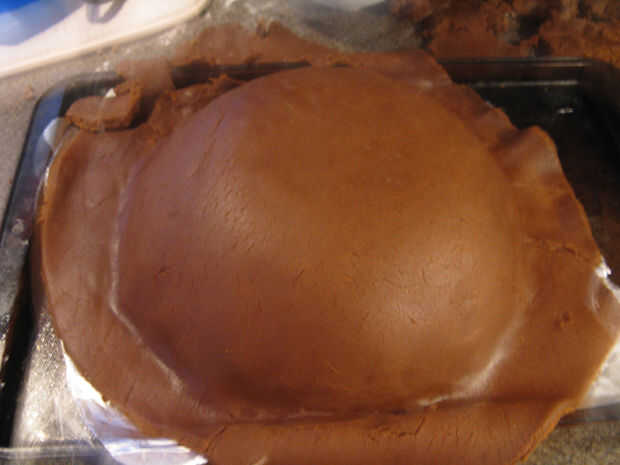 Suave sobre el tazón y arreglar cualquier grieta presionando y alisando juntos (no tiene que ser perfecto).