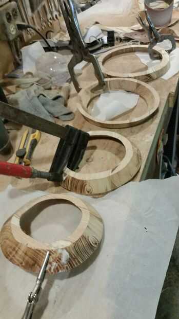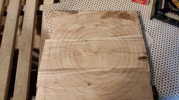 Creo que la madera es Acacia pero tal vez alguien puede decirme con certeza. Hice una resbalón de registro provisional para un Hanon y corte 1" pedazos entonces pegados y afianzado con abrazadera juntos para hacer un panel de 12" x 12". Después de que había puesto el pegamento, solía un compás dibuja círculos concéntricos separados de 1/2". Entonces cometí un error, er, um, mediados de-construir el cambio de diseño. Instructible estaba por dave.vaness.79 (en mis favoritos) muestra cómo la pila y restos del pegamento luego dibuje una línea de la izquierda y hacer marcas cada 1/2" a través de la parte inferior para marcar los ángulos de mi sierra. PIC 4 es imagen de Dave que muestra los ángulos que debía utilizar en mi sierra. No pila de desechos, sólo usé 1 pieza para marcar mis ángulos antes que cortar los anillos en mi sierra... Ni que decir, los ángulos son demasiado y terminé con un tazón de fuente "acanalado" así mi ensaladera es ahora un tazón de fuente. Una vez que tenía los anillos de cortado y había pegado a través de los cortes, I apilados, pegado y afianzado con abrazadera 2 a la vez hasta que todas las piezas se pegan. Usé pegamento impermeable para que la taza se puede lavar.