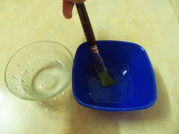 1. tomar el tazón de fuente de la plantilla y aplicar agua a la superficie interior con un cepillo. (Apenas mojado a los lados, no deje que agua a recoger en el recipiente)