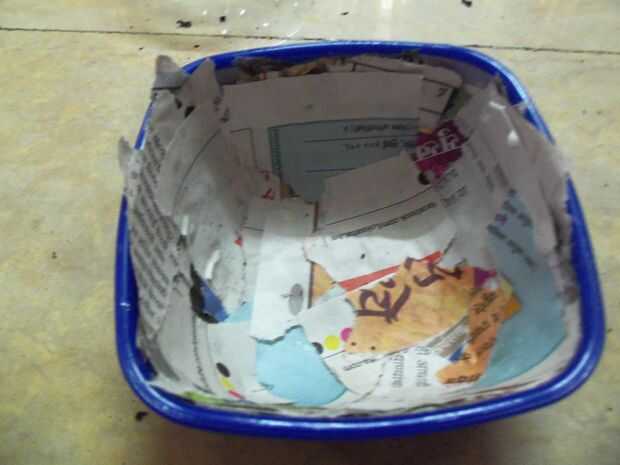 2 luego pega más pedazos de papel sobre la capa anterior.
