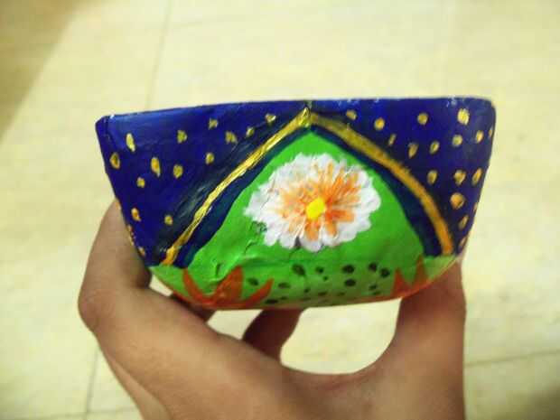 Pintar el vaso de papel usando colores acrílicos y pinceles en cualquier forma que quieras.