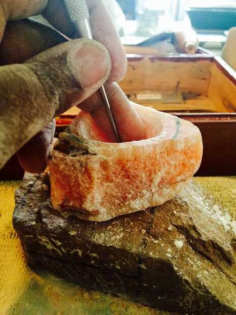 Comience por dibujar un círculo con un marcador sobre una parte plana de la piedra, que será la apertura del recipiente. Luego, con su mascarilla y guantes, gancho agarrador el pequeño martillo en una mano y una aguja resistente elegir en otra parte. Comienza golpeando suavemente con el pico y un martillo en el interior del círculo dibujado (ser conscientes de que el recipiente necesita una llanta como bien-dejar unos 5mm al espacio de 7mm desde el borde de la piedra para formar un borde). Comenzar a picar la piedra para revelar lentamente la cavidad del recipiente (ver fotos). Golpe de pluma por golpe, viruta por viruta, escama, el alabastro para crear el tazón de fuente de la piedra. Tenga cuidado de no golpear tan duro que la piedra o lo que es peor, se agrietan. Mantener groseramente troceado, el tazón de fuente de la piedra. Hacer esto hasta que se alcanza la profundidad deseada, justo antes de alcanza la parte inferior de la piedra. Ver fotos por ejemplo de cómo esto se ve... Cuando hecho mover al siguiente paso.