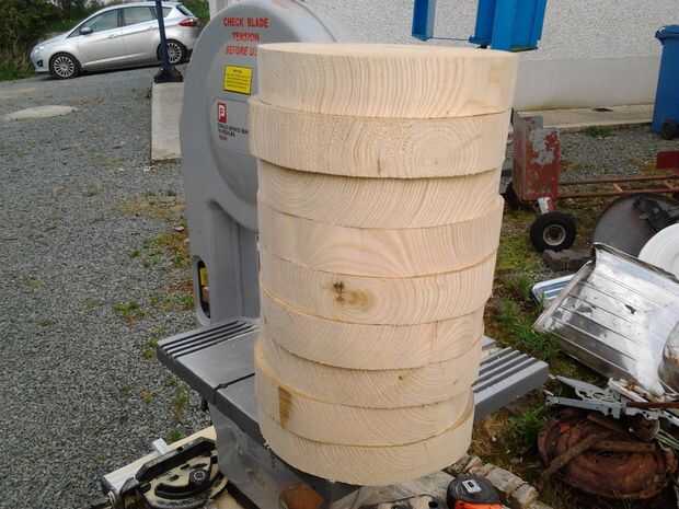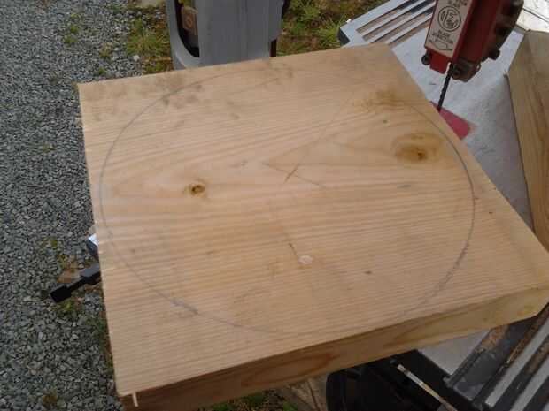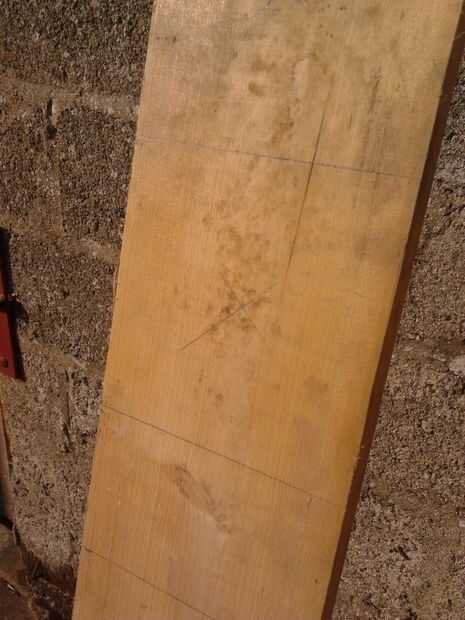 Revisé el cobertizo de madera para ver qué cortes de tablones de pino que tenía y descubrió que tenía 2 grandes tablones los constructores dejados después de las remodelaciones a mi casa las tablas donde 8 "x 1 1/2". En el examen un tablón tenía una grieta larga a lo largo de la veta y no era conveniente para tazón de fuente blanco pero podría resawn para husillo de trabajo. el segundo tablón tenía una leve fractura en un extremo pero era sonido para marcar 9 8" plazas.