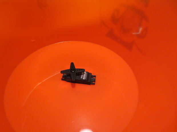 El cubo superior candy tiene el mecanismo y el caramelo. Todo lo que se necesita aquí es montar el motor servo. Tenga en cuenta que el motor en la foto no es la que en última instancia, sin embargo, el tamaño y los orificios de montaje en su mayoría son los mismos entre los modelos.