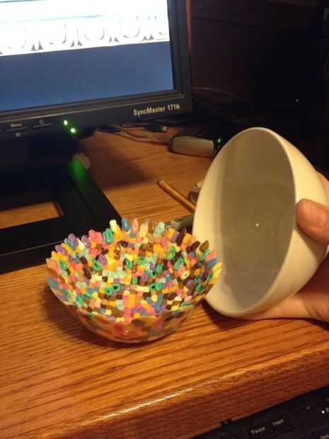 hice esta causa mi hermana tenía granos extras ahíPaso 1: Paso uno Haz un cuenco antiguo que ya no usasPaso 2: Paso 2 De conseguir cuentas que este aspectoPaso 3: Paso 3 Llene el bol con el prensa y granos el hasta su piso a la tazaPaso 4: Paso 4Lueg