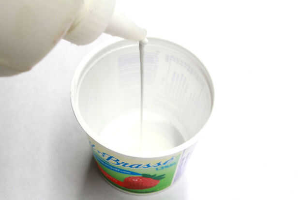 La cantidad de pegamento en total depende de cuánto quieres hacer el tazón de fuente. Cuanto más grande es, el pegamento más es necesario.
