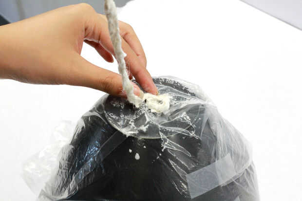 Como alternativa, puede usar palillos desechables para evitar que manos sucias deslizando y tirando la cuerda por el extremo abierto. Asegúrese de que no romper los palillos en dos!