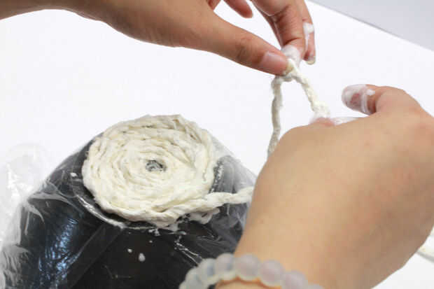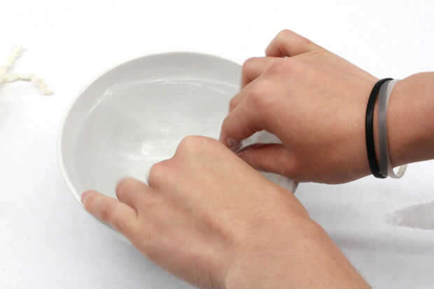 Se pueden sumergir las manos en el recipiente de agua para deshacerse de cualquier exceso de pegamento en los dedos.