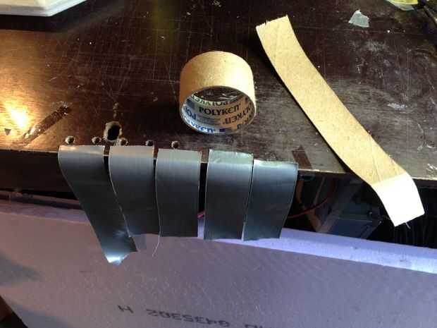 Primero cortar o rasgar unas tiras de ductape de un poco más largo que el diámetro de su tazón de fuente, de ser Hice tiras de por lo menos 5 4 de los cuales son de la longitud mencionada anterior y por último utilicé el final de la ductape (cuando se acabe el rollo) como una etiqueta para rematar las cosas.