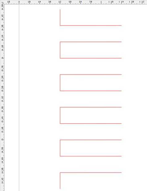 Ahora dibuja una 0,75" línea larga horizontal a partir de la parte inferior de la línea vertical de la parte superior. Esto establece la longitud de la articulación del dedo. Utilizando la misma técnica que las líneas verticales, copias de 9 de la línea horizontal espaciados verticalmente 0,2" aparte. Luego, cierre los extremos abiertos de las articulaciones de la caja con las líneas verticales de 0,2" alto. Esto completa el primer empalme de la caja.