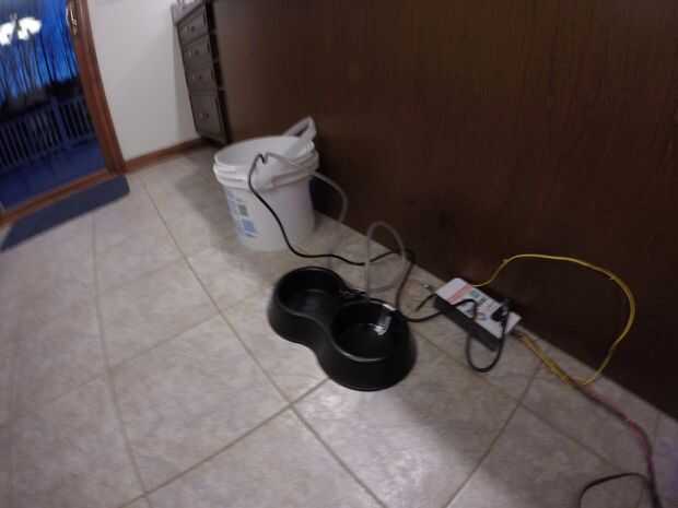 Tengo 2 perros que viven en un criadero al aire libre. Durante el verano es difícil para mí seguir manteniendo su depósito de agua llenado. Así que hice esto. Mis perros como masticar por lo que todo tiene que ser "a prueba de masticar". Hice 1