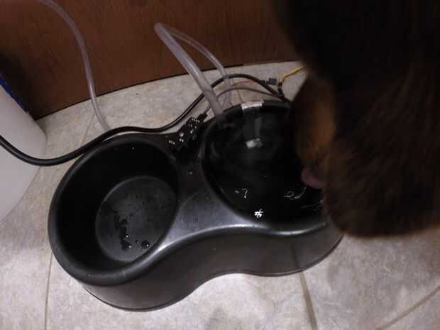 tenemos perros y gatos en nuestra casa. Los gatos son meticulosos sobre el agua y los perros se beben fuera de cualquier depósito de agua en la casa. Después de los perros terminó de beber, los gatos no querían nada que ver con el agua en el recipien