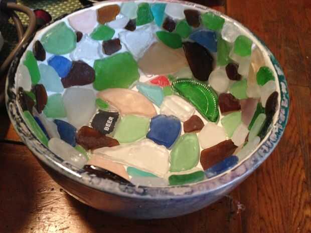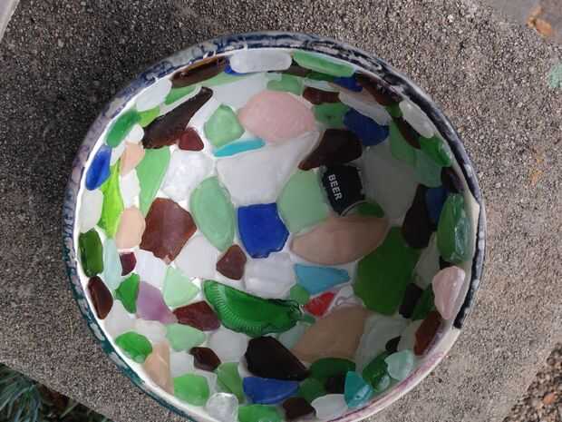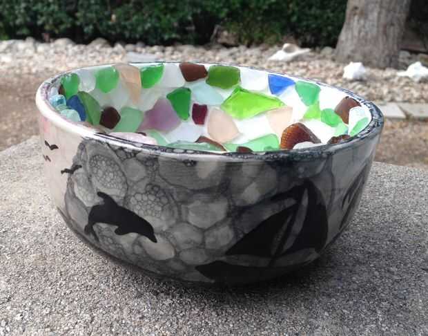 Tazón de mosaico de vidrio de mar (1 / 4 paso)