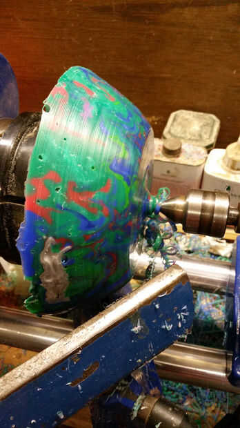 Montar el espacio en blanco entre cabeza de acción de la cola como centrado posible por ojo (brillante herramienta imposible de comprar un nuevo así uno incluso de screwfix puso una funda protectora en el suyo como gafas) y luego realizar verdadera alrededor de dichos centros y la forma que quiero antes de cortar una cola de Milano Plegadizos en la base para mi las mordazas del portabrocas y ampliar en el agarre.