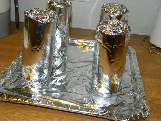 Las latas de aluminio de envolver y pare en una bandeja para hornear. Asegúrese de que cubre la cacerola, ya habrá un montón de grasa.