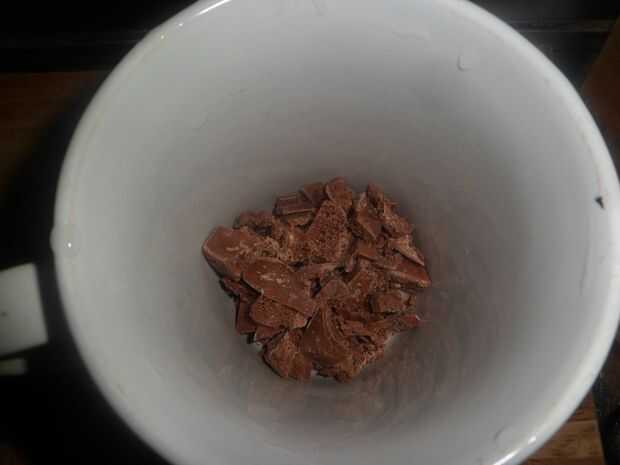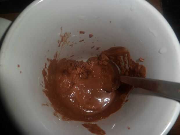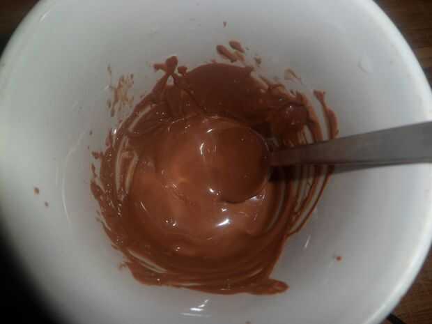 -colocar el chocolate en el microondas durante unos 30 segundos y luego mezclarlo. Entonces otra vez de mantener durante 15 segundos.