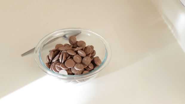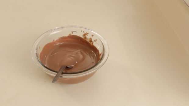 Ahora vamos a derretir nuestro chocolate. Voy a mina derretir en el microondas. Empezar por cocinar en alto por 30 segundos y luego revuelva, luego cocinar para otro 25 a 30 segundos y revuelva, luego 10 a 15 segundos, hasta que es agradable y que moquea.